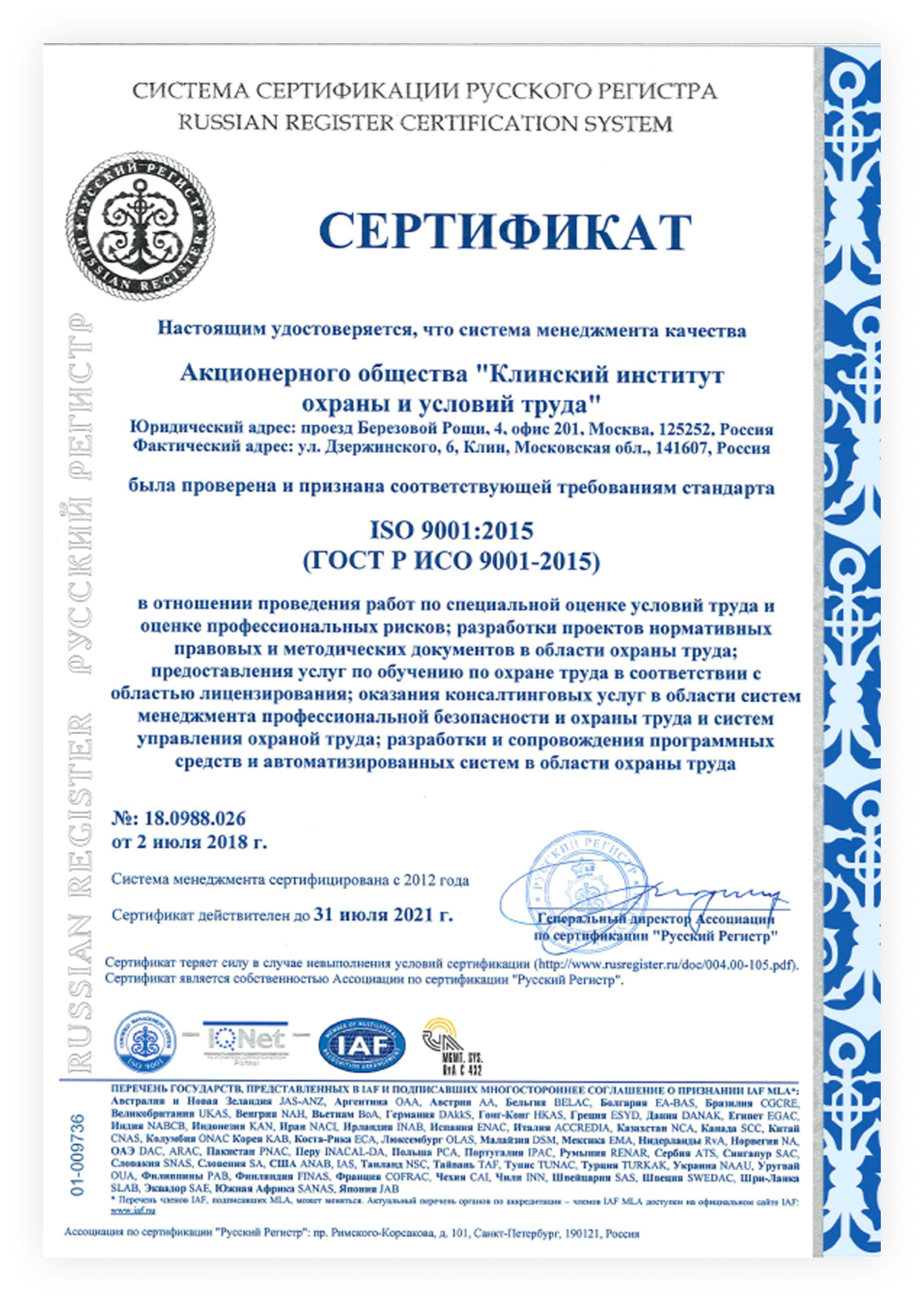 Наши работники имеют сертификаты ведущих аудиторов по ОНSAS 18001:2007, зарегистрированных в IRСА