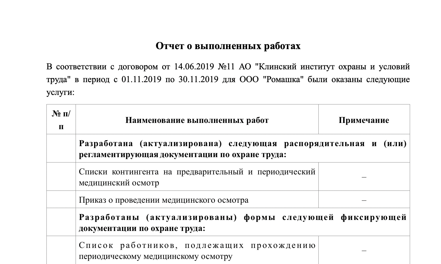 Регулярный отчет о состоянии охраны труда, выполненных и планируемых работах